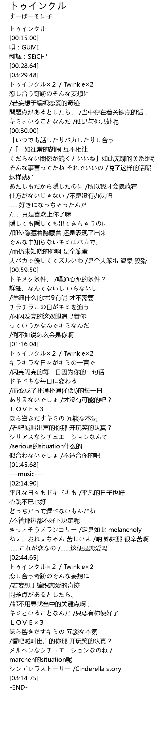 | [02:45.15] | トゥインクル×2 / Twinkle×2 |