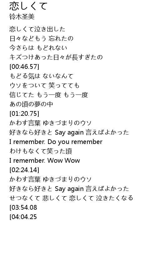 | [03:38.97] | せつなくて 悲しくて 恋しくて 泣きたくなる |