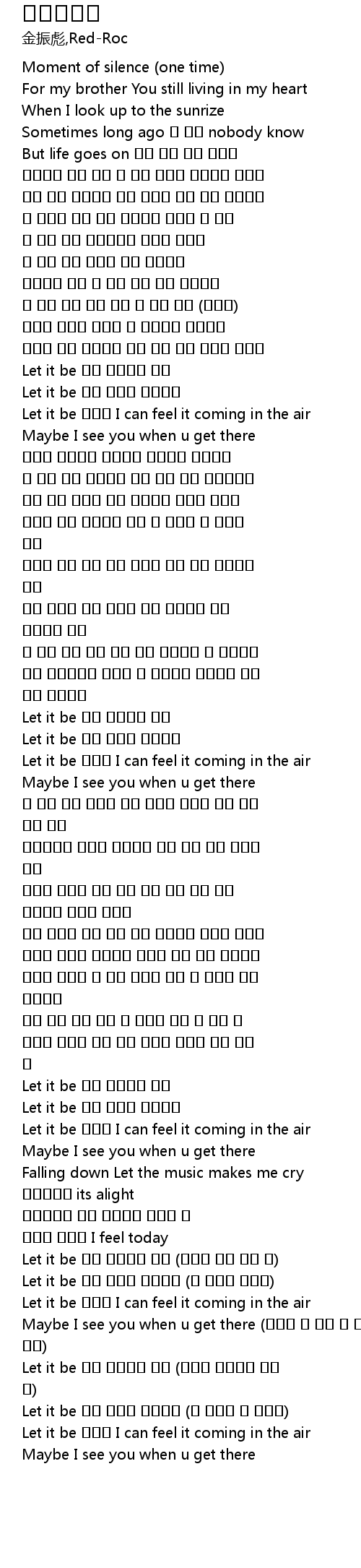 | [03:38.33] | Let it be 여전히 I can feel it coming in the air |