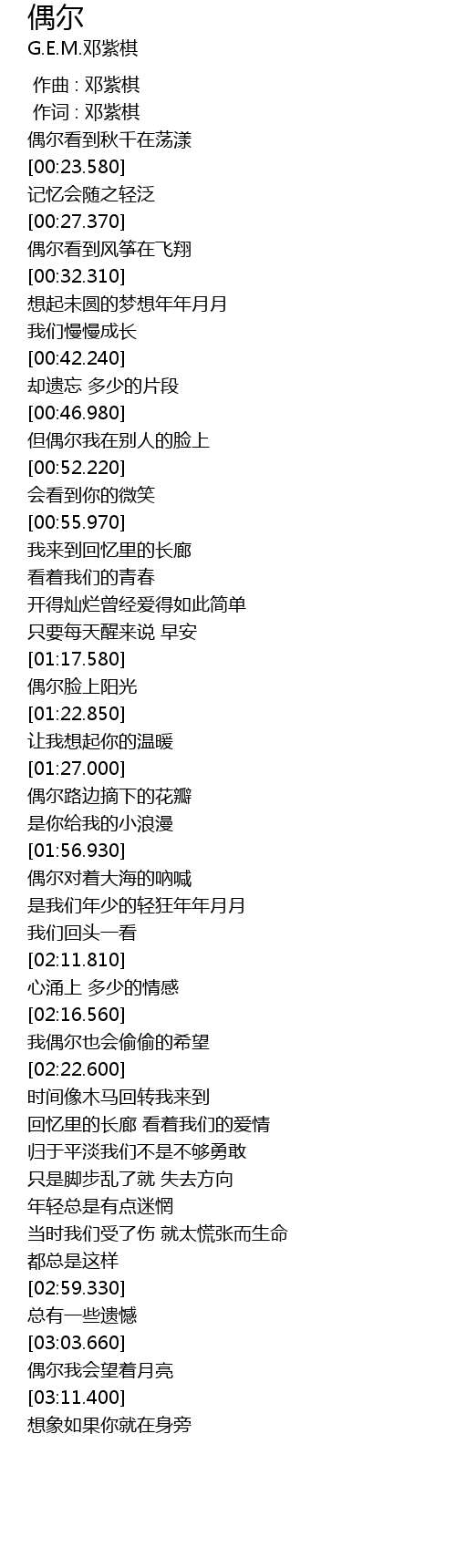 | [00:19.670] | 偶尔看到秋千在荡漾 |