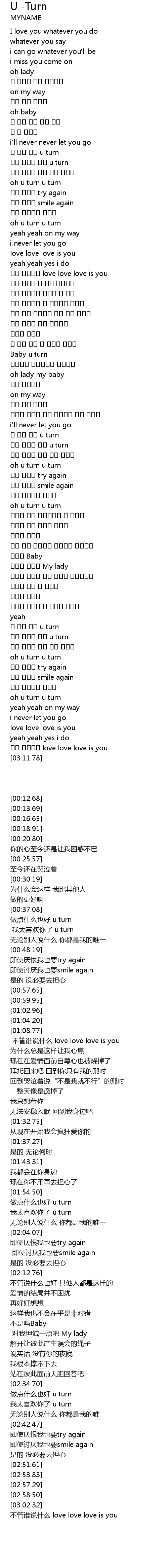| [01:56.51] | 뭘 해도 좋아 u turn |