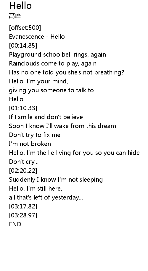 | [00:00.00] | Evanescence - Hello |