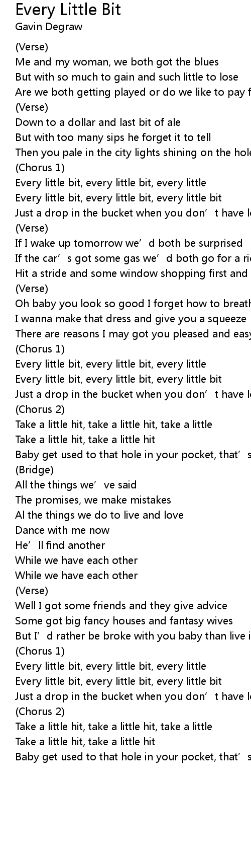 | Every little bit, every little bit, every little | |