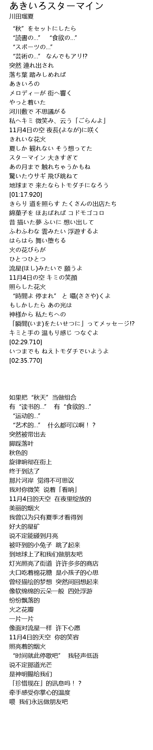 | [00:49.480] | 11月4日の空 夜長(よなが)に咲く |