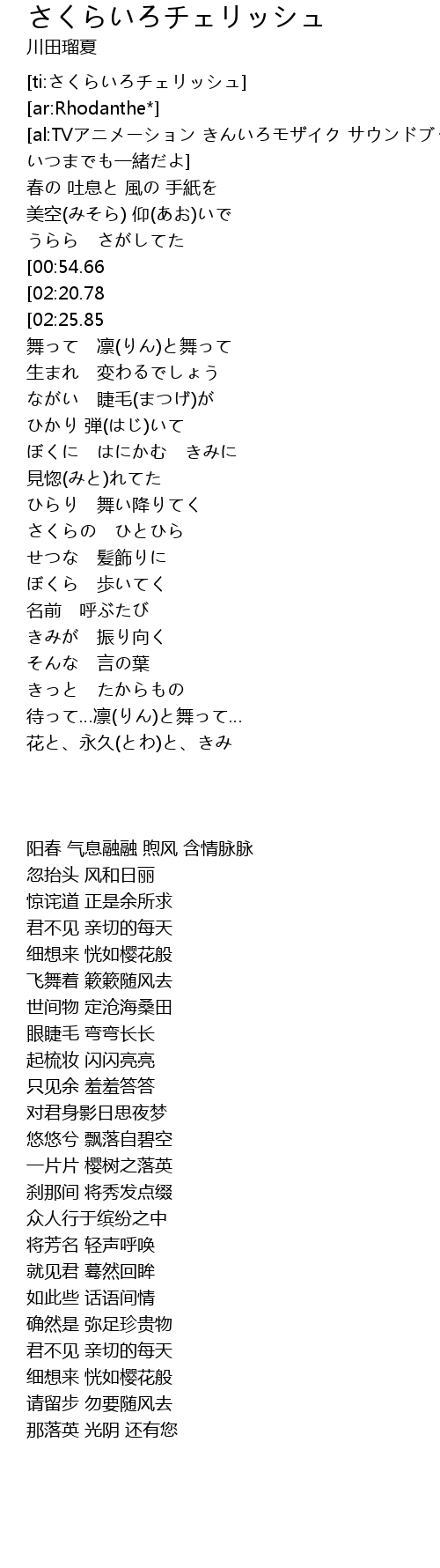 | [00:40.95][02:25.85] | 日々も さくらのよう |