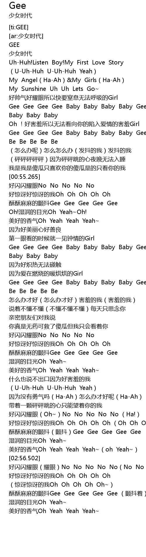 | [01:34.671] | Gee Gee Gee Gee Baby Baby Baby Baby Gee Gee Gee Gee Be Be Be Be Be Be |