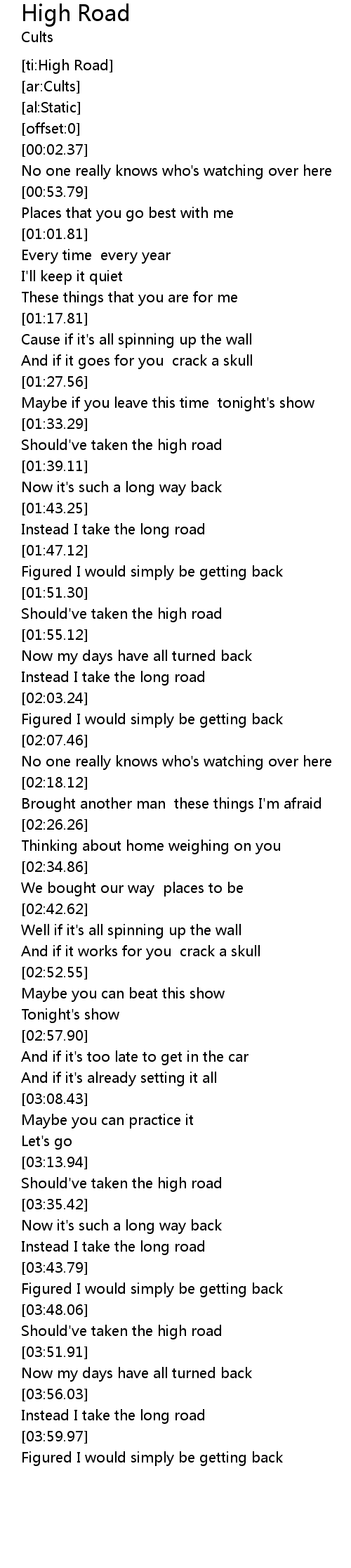 | [ti:High Road] | |