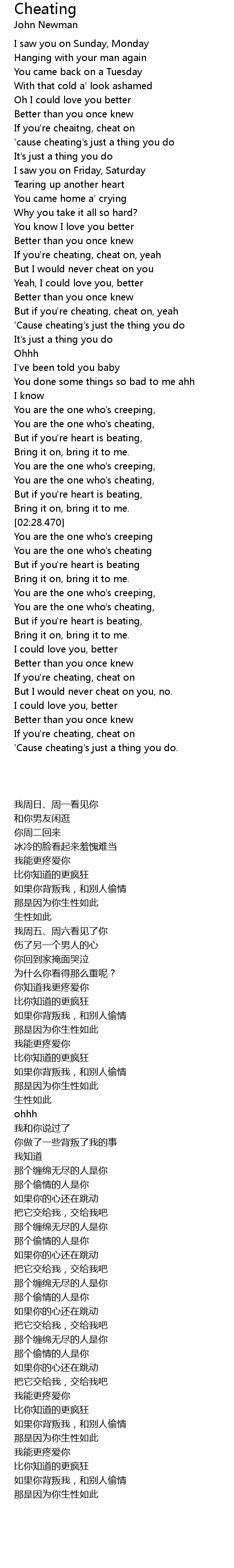 'Cause cheating's just the thing you do |