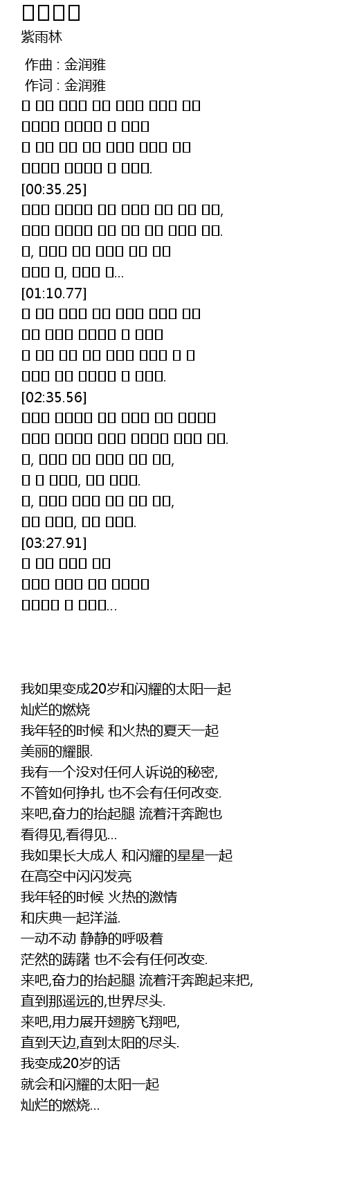 | [00:00.30] | 난 내가 스물이 되면 빛나는 태양과 같이 |