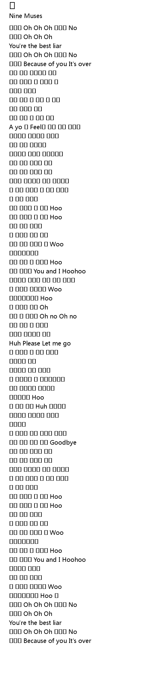 | [00:14.290] | 핑핑핑 Because of you It's over |