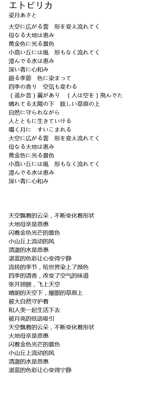 | 歌曲 | エトピリカ |