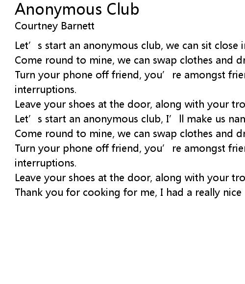 | Let’s start an anonymous club, we can sit close in the dark. | |