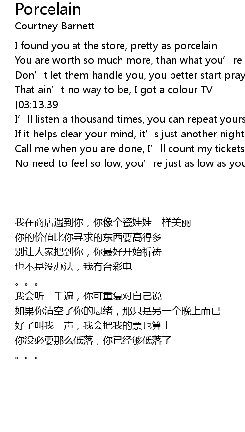 | [01:10.35] | I found you at the store, pretty as porcelain |