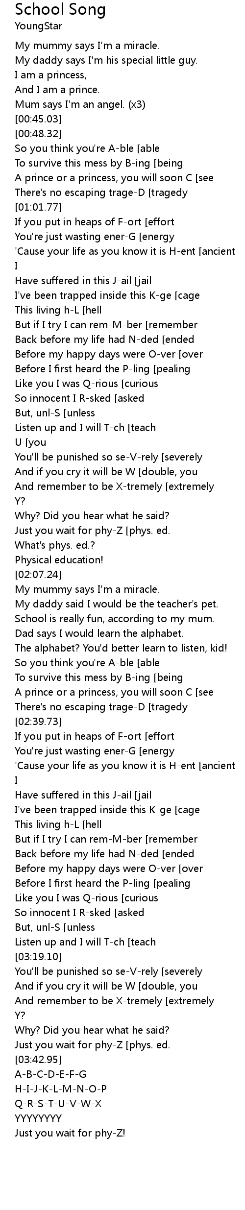 | [03:37.99]Just you wait for phy-Z [phys. ed.] |