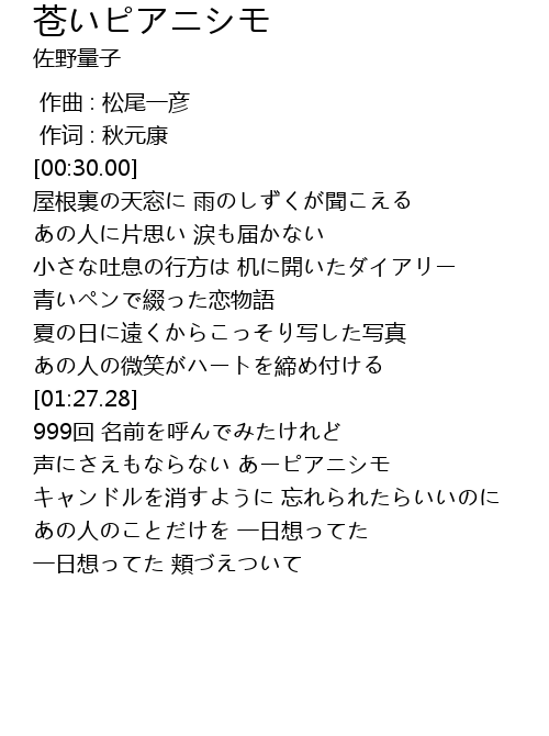 | [00:59.12] | 青いペンで綴った恋物語 |