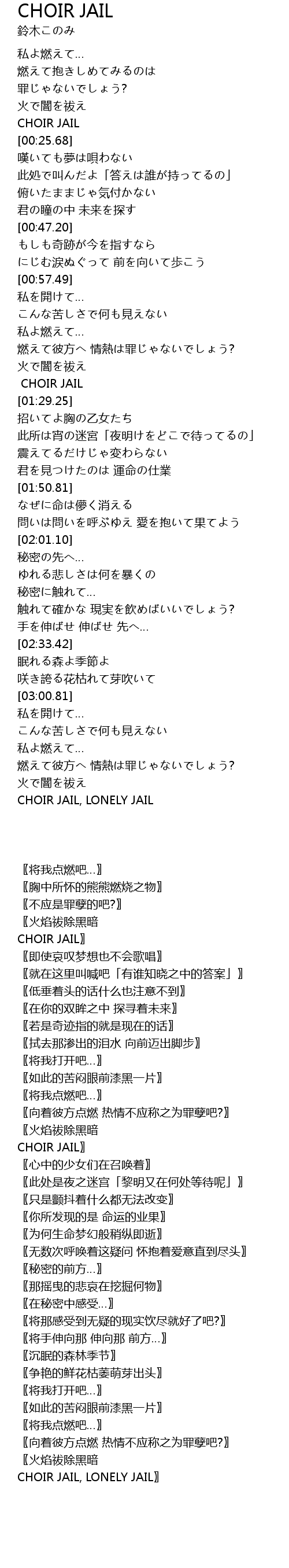 | [03:29.42] | CHOIR JAIL, LONELY JAIL |