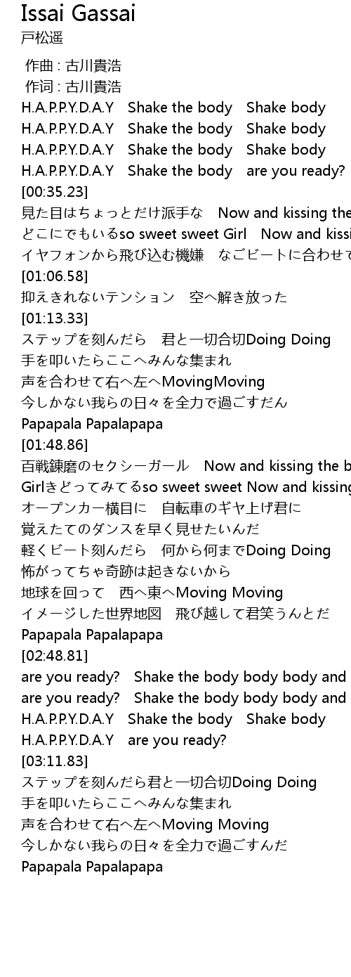 | [03:02.17] | H.A.P.P.Y.D.A.Y Shake the body Shake body |