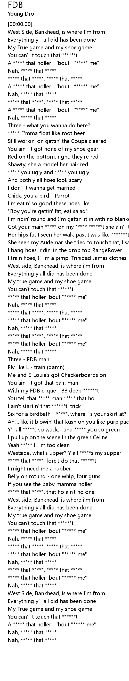 | [01:59.70] | With my FDB clique - 33 deep ******t |