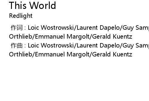 | [00:00.000] | 作曲 : Loic Wostrowski/Laurent Dapelo/Guy Sampieri/Laurent Orthlieb/Emmanuel Margolt/Gerald Kuentz |