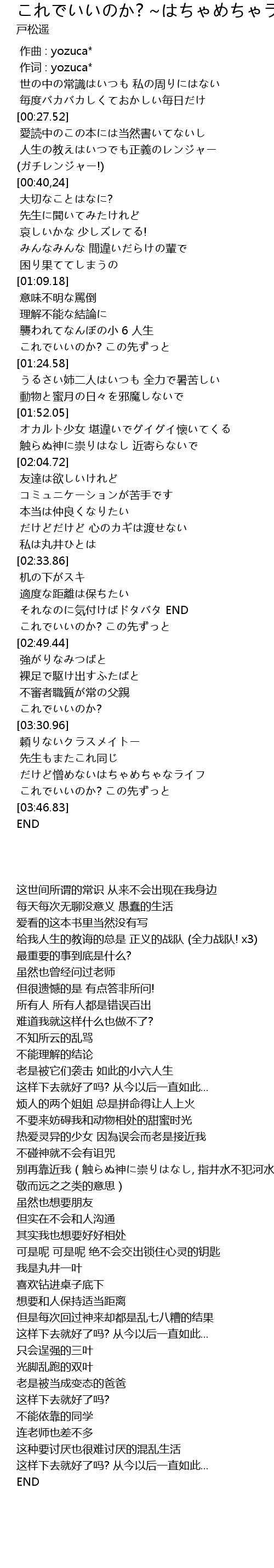 | 歌曲 | これでいいのか? ~はちゃめちゃライフ~ |