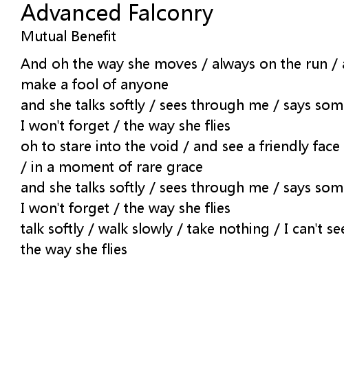 and she talks softly / sees through me / says something / I can't hear it / but I won't forget / the way she flies |
