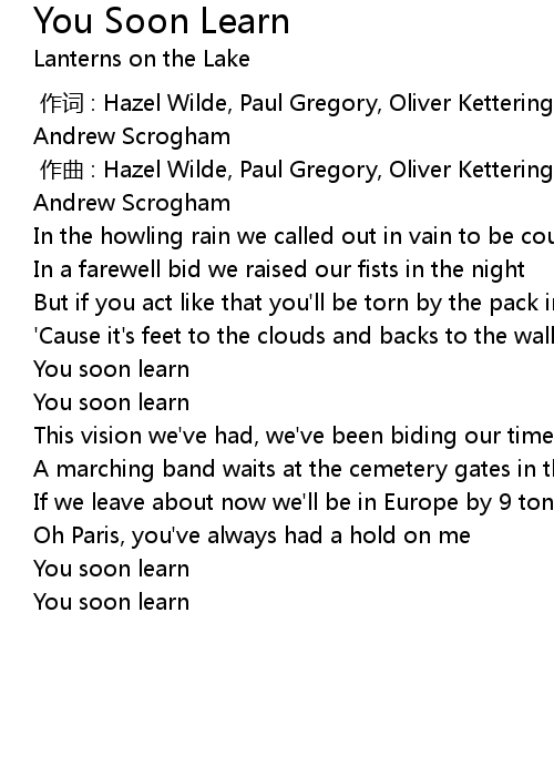 | [00:01.000] | 作曲 : Hazel Wilde, Paul Gregory, Oliver Ketteringham, Sarah Kemp, Andrew Scrogham |