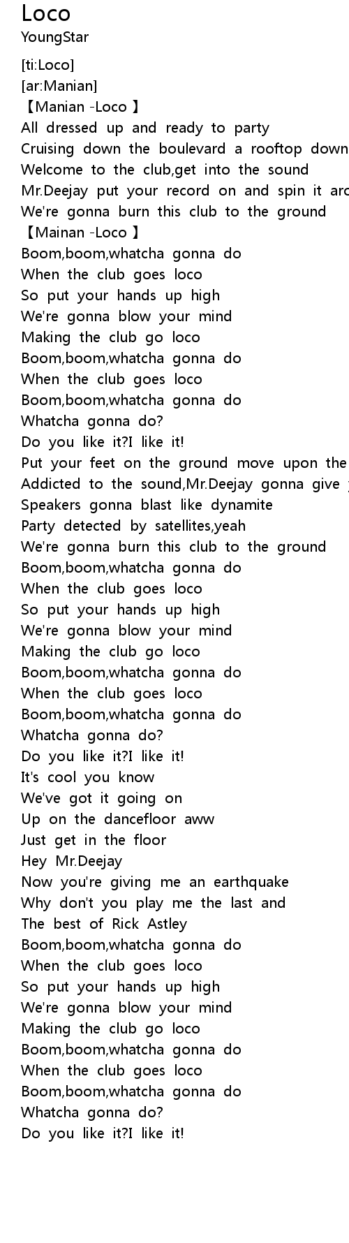 | [00:38.390] | Boom, boom, whatcha gonna do |