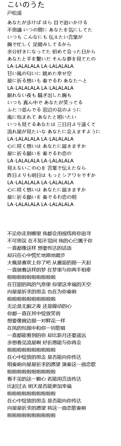 | [03:00.270] | 唄奏响向星星祈求的愿望 演奏这一曲恋歌 |