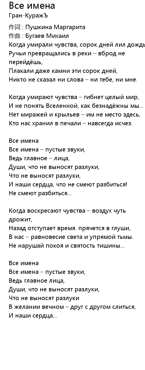 Все имена 歌词