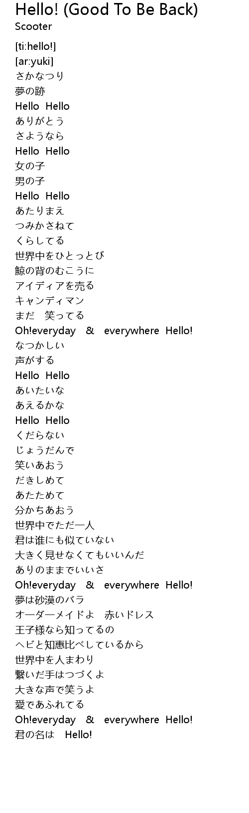 | [00:37.75] | Hello Hello |