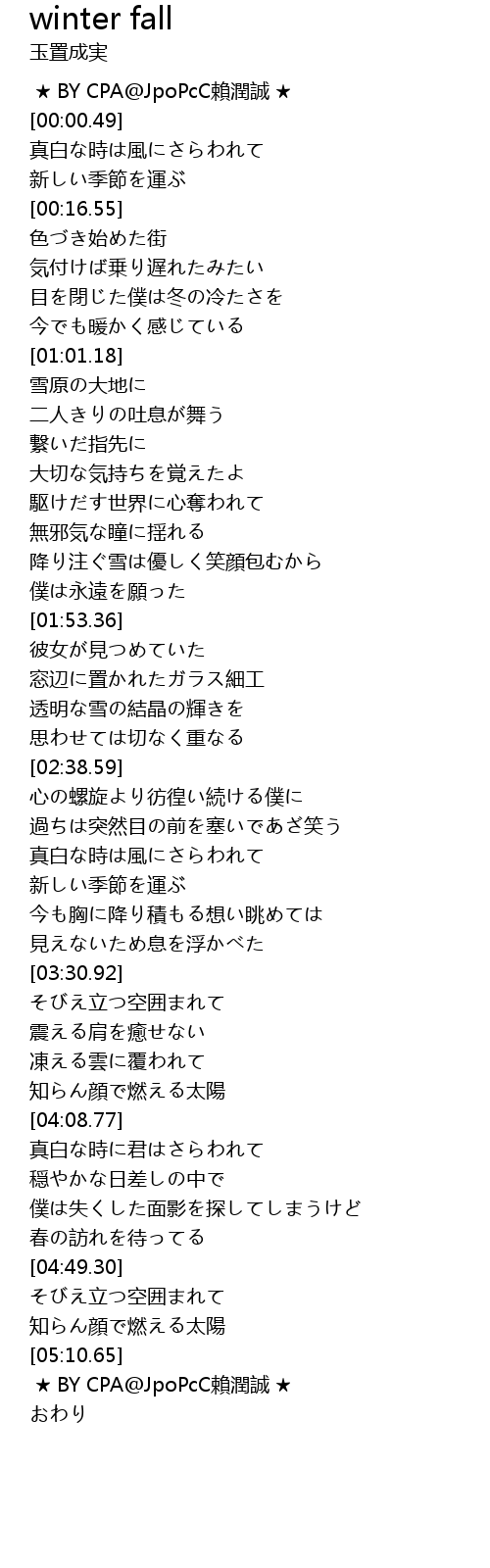 | [02:25.31] | 透明な雪の結晶の輝きを |