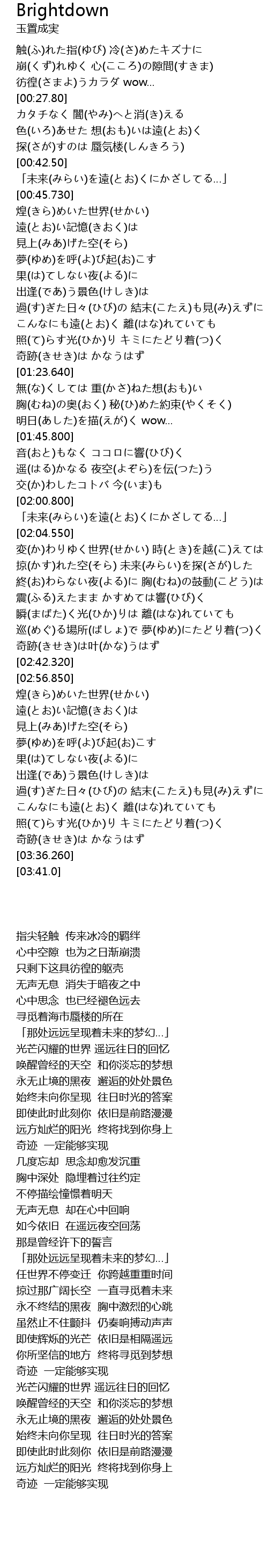 | [00:42.750] | 「未来(みらい)を遠(とお)くにかざしてる…」 |