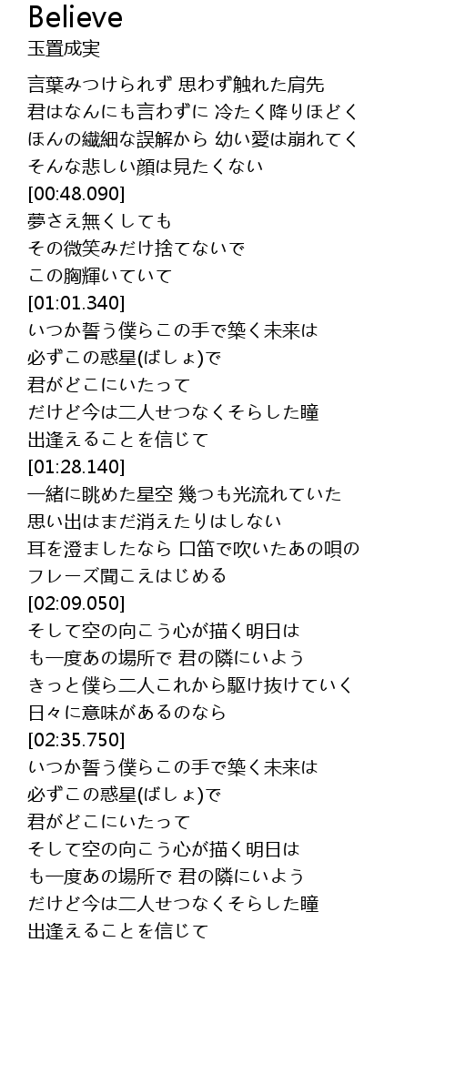 | [03:38.420] | 出逢えることを信じて |