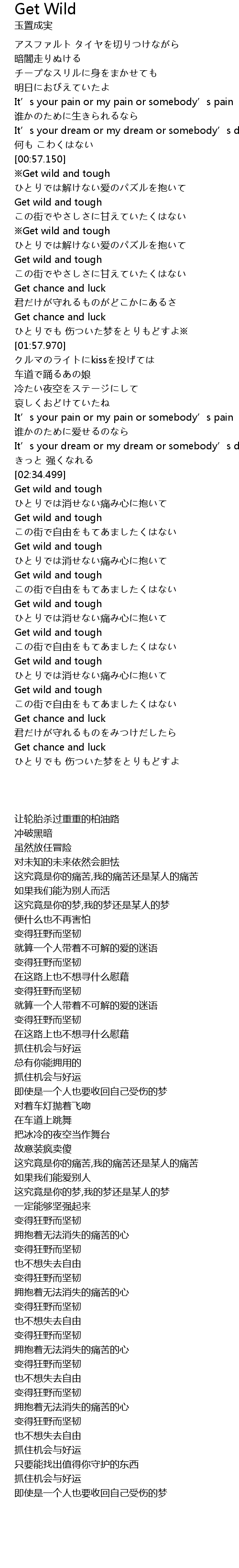 | [01:02.900] | ※Get wild and tough |