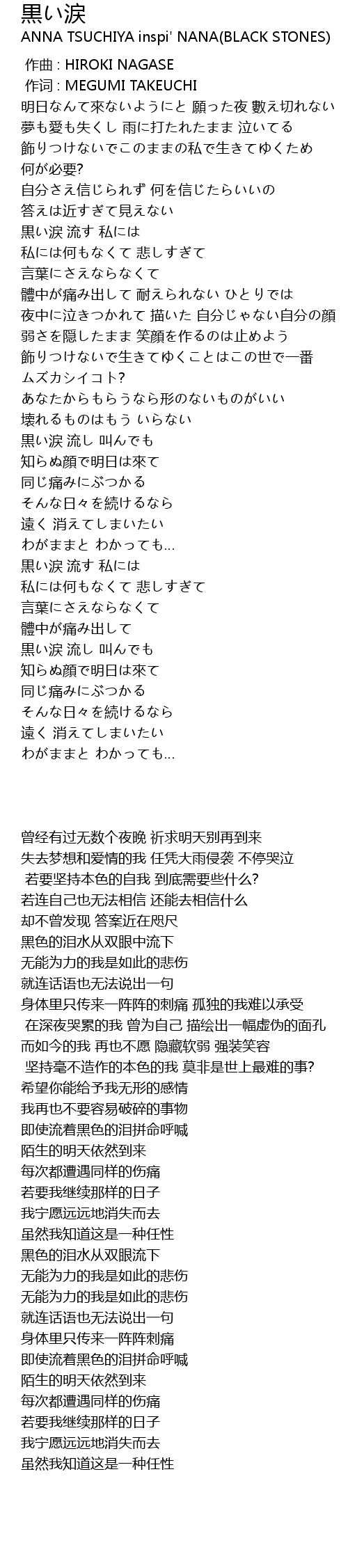 | 歌手 | ANNA TSUCHIYA inspi' NANA(BLACK STONES) |