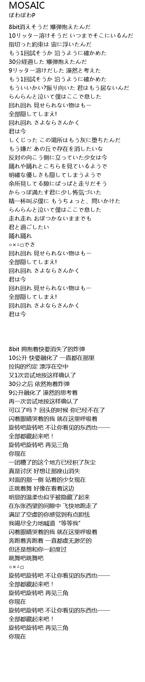 | [03:48.000] | 回れ回れ さよならさんかく |