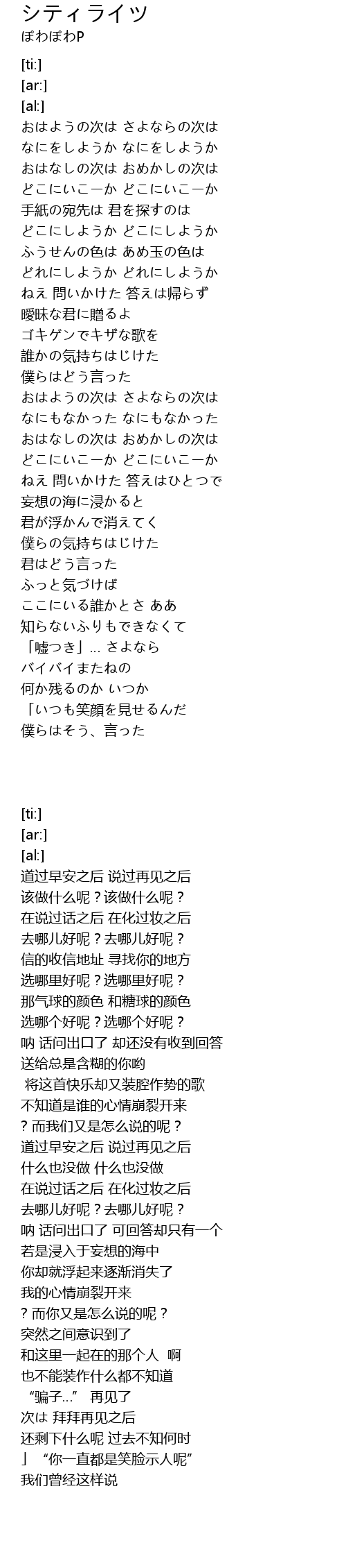 | [00:26.94] | 道过早安之后 说过再见之后 |