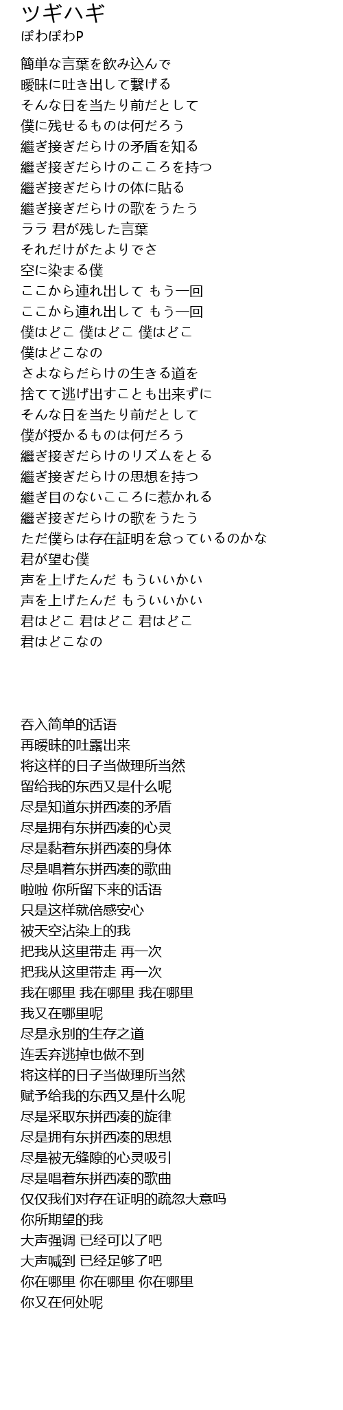 | 歌曲 | ツギハギ |