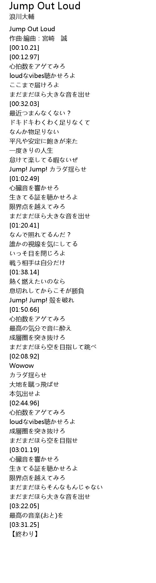 | [00:00.00] | Jump Out Loud |