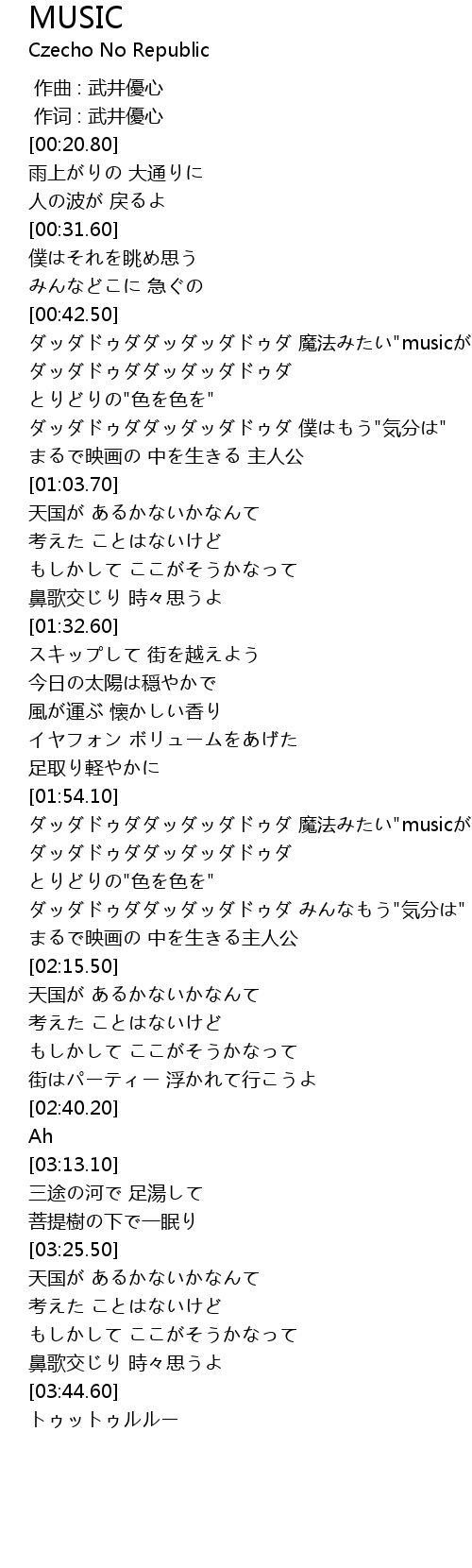 | [00:42.52] | ダッダドゥダダッダッダドゥダ 魔法みたい"musicが" |