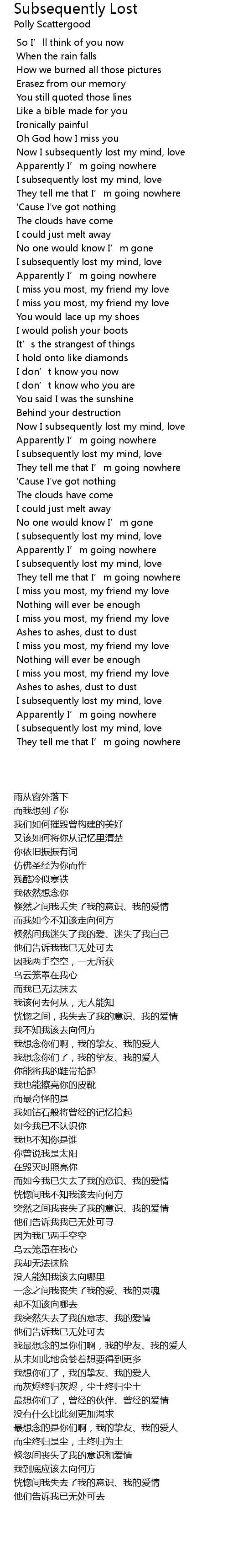 | 歌曲 | Subsequently Lost |