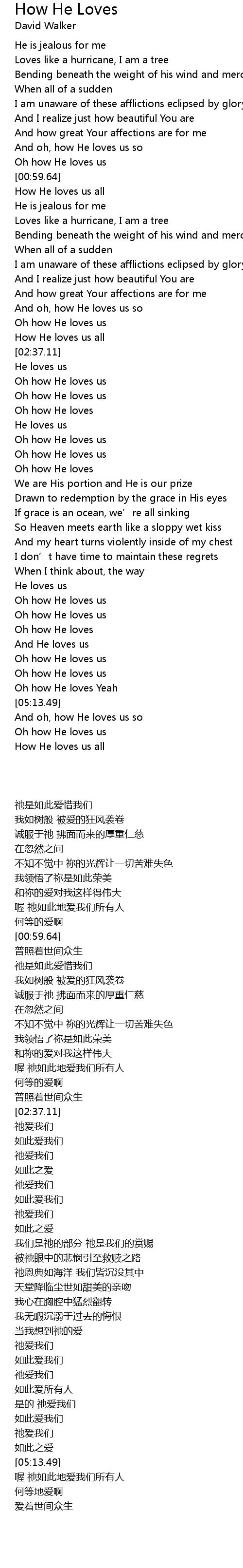 | [00:59.71] | How He loves us all |