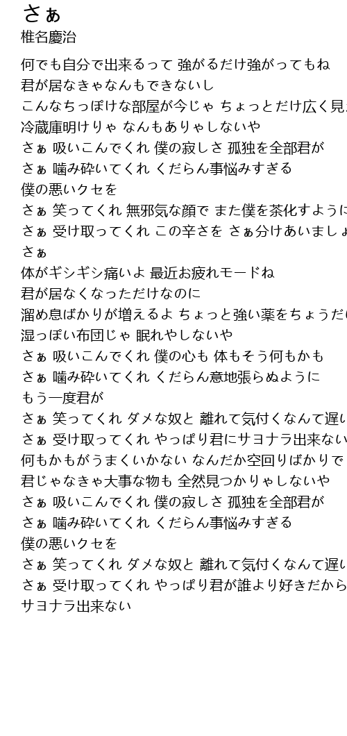 | さぁ 噛み砕いてくれ くだらん事悩みすぎる 僕の悪いクセを | |