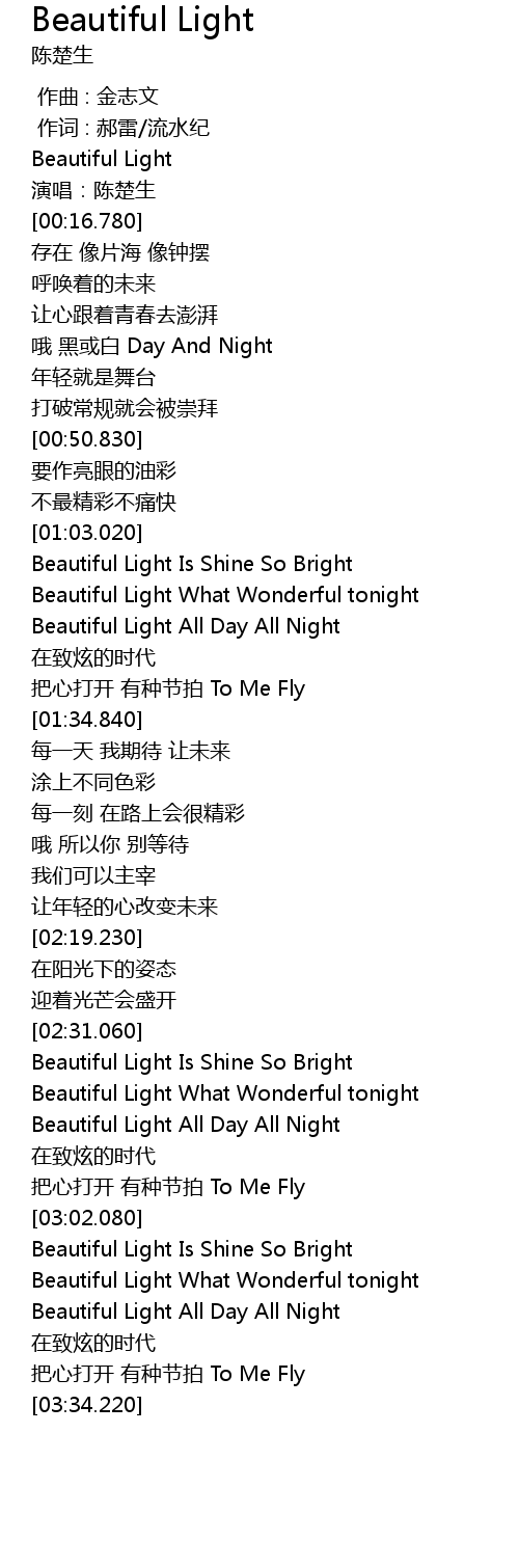 | [03:04.560] | Beautiful Light Is Shine So Bright |