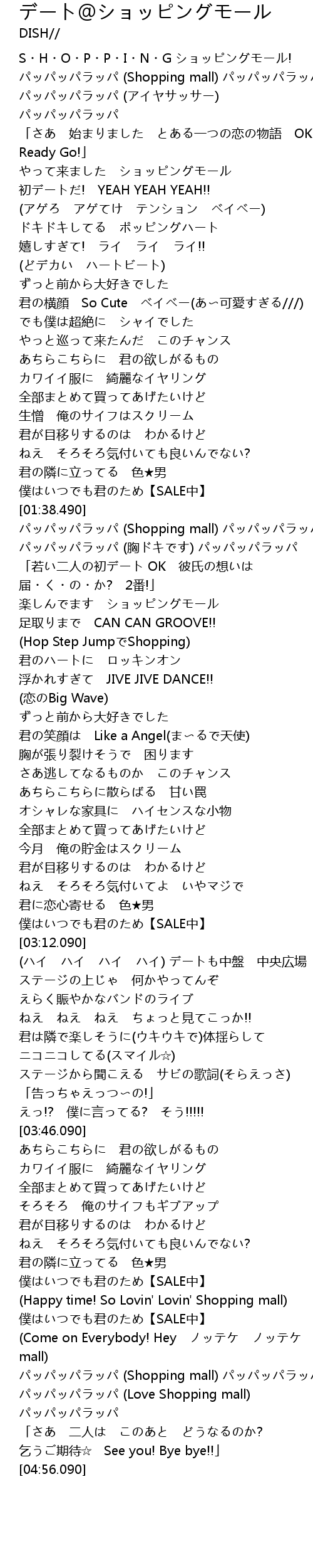 | [04:37.090] | (Come on Everybody! Hey ノッテケ ノッテケ Love Shopping mall) |