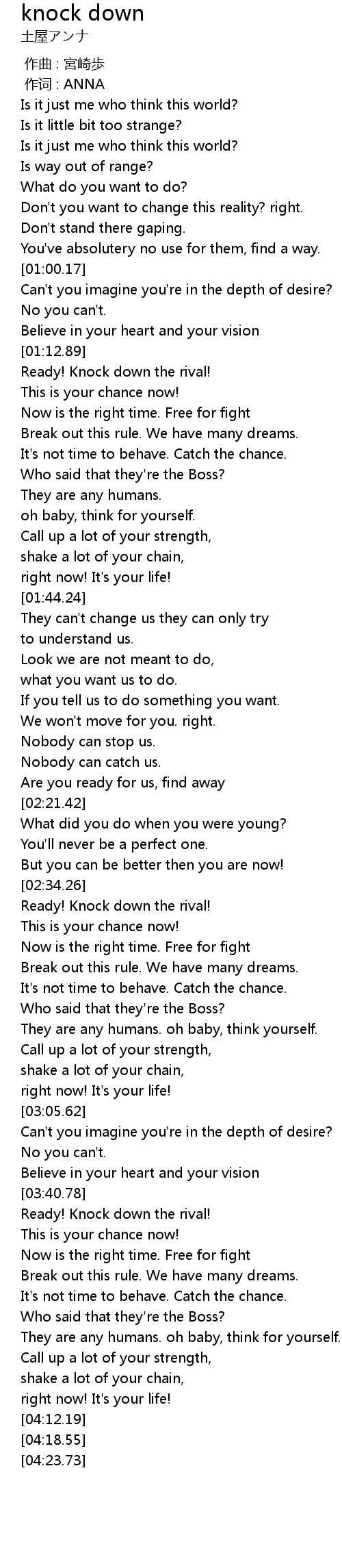 | [02:53.17] | They are any humans. oh baby, think yourself. |