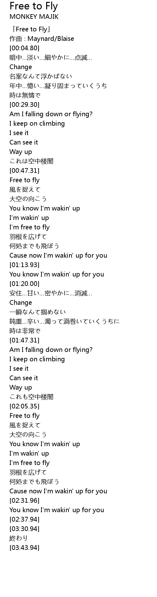 | [00:00.80] | 「Free to Fly」 |