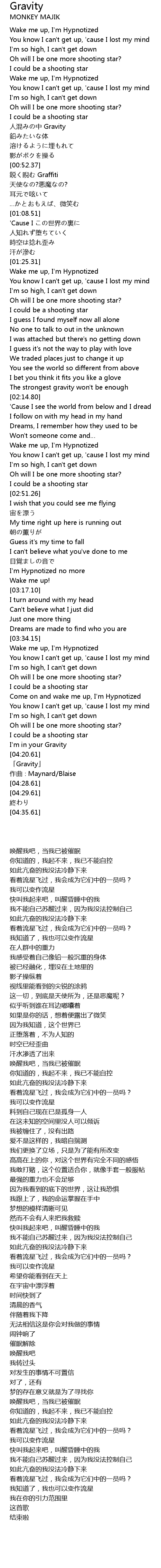 | [00:53.04] | 视线里能看到的尖锐的涂鸦 |