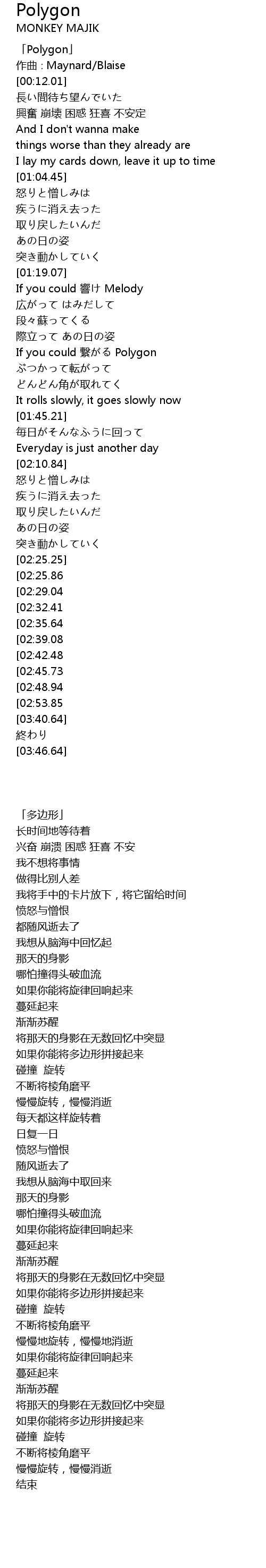 | [03:18.84][02:39.08] | If you could jì Polygon |