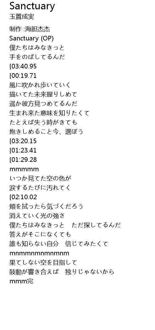 | [00:02.59] | Sanctuary OP |